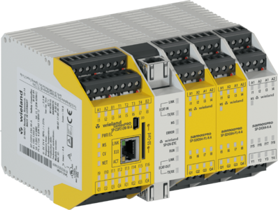 With the new analog modules, Wieland is expanding the samos®PRO COMPACT safety controller to include monitoring of force, temperature, pressure, flow, distance, inclination, and flow rates. With ready-made libraries in the safety software especially for analog values, limits, ranges, ratios, and differences can be monitored and thus new, specific applications can be implemented easily and intuitively.