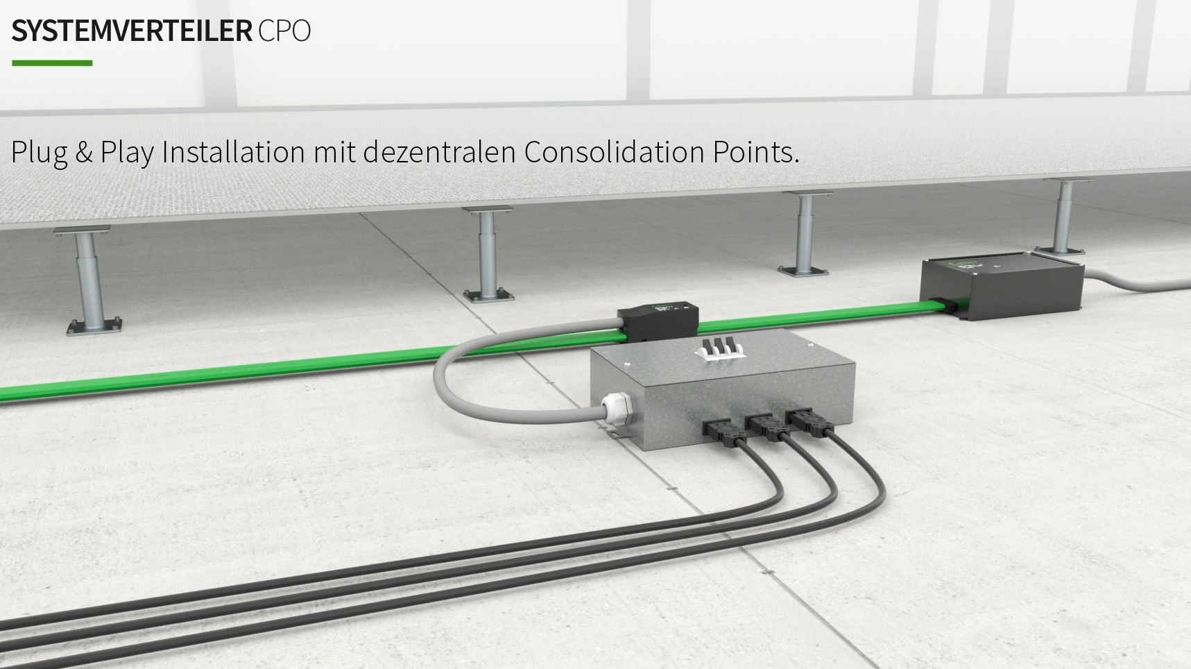 Le point de consolidation est le point de transition entre une infrastructure permanente pour l'alimentation électrique, le signal et les données et les postes de travail ou le réseau de sortie. L'architecture CPO crée des configurations flexibles, minimise les coûts de remplacement, et réduit le temps d'installation des bureaux modulaires.