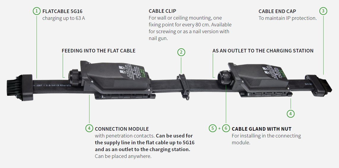 Pour relever ces défis et faciliter l'électromobilité à long terme, Wieland Electric présente une solution pionnière pour la mise en place d'une infrastructure de recharge avec une distribution d'énergie décentralisée. Le système de câble plat podis® permet une recharge rapide, sûre et flexible des véhicules électriques dans les parkings souterrains ou à étages, qu'ils soient nouveaux ou existants.